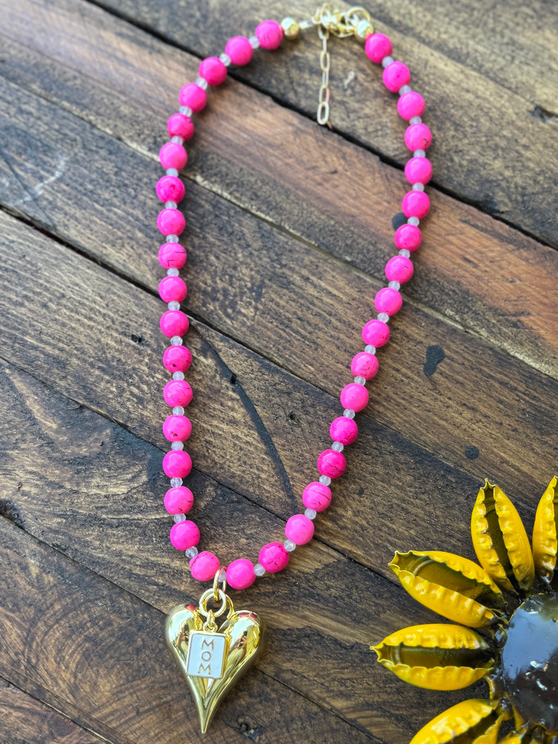 Beaded Mom Heart Charm Necklace