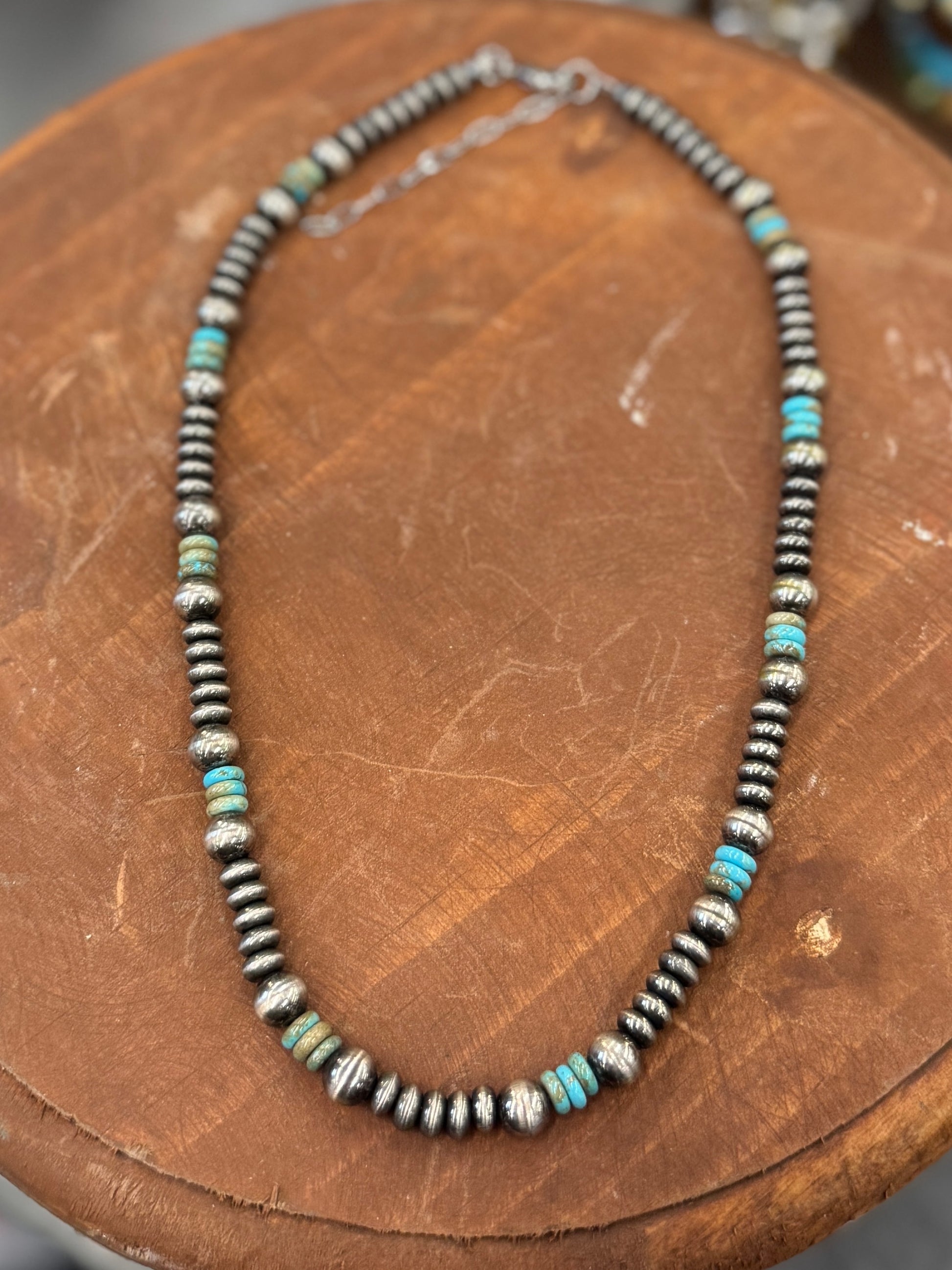 - Faux pearls & kingman turquoise